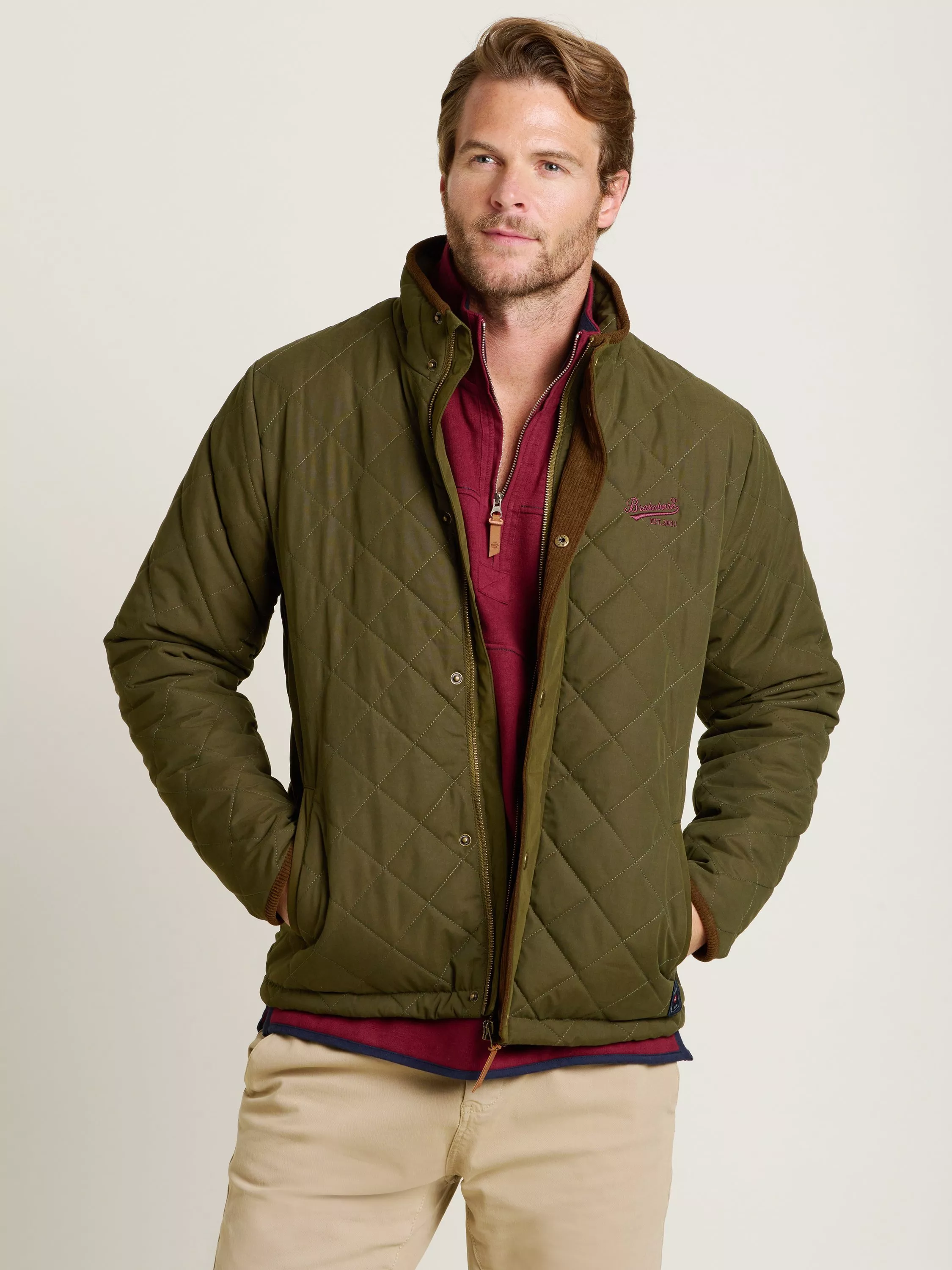 Keep it khaki this season with the Brakeburn Quilted Jacket. Warm to wear and soft to the touch, it has zip and popper fastenings and pockets at the side. Its blue and green plaid patterned fabric liner adds colour, while brown cord highlights on the collar, placket and cuffs bring the texture.