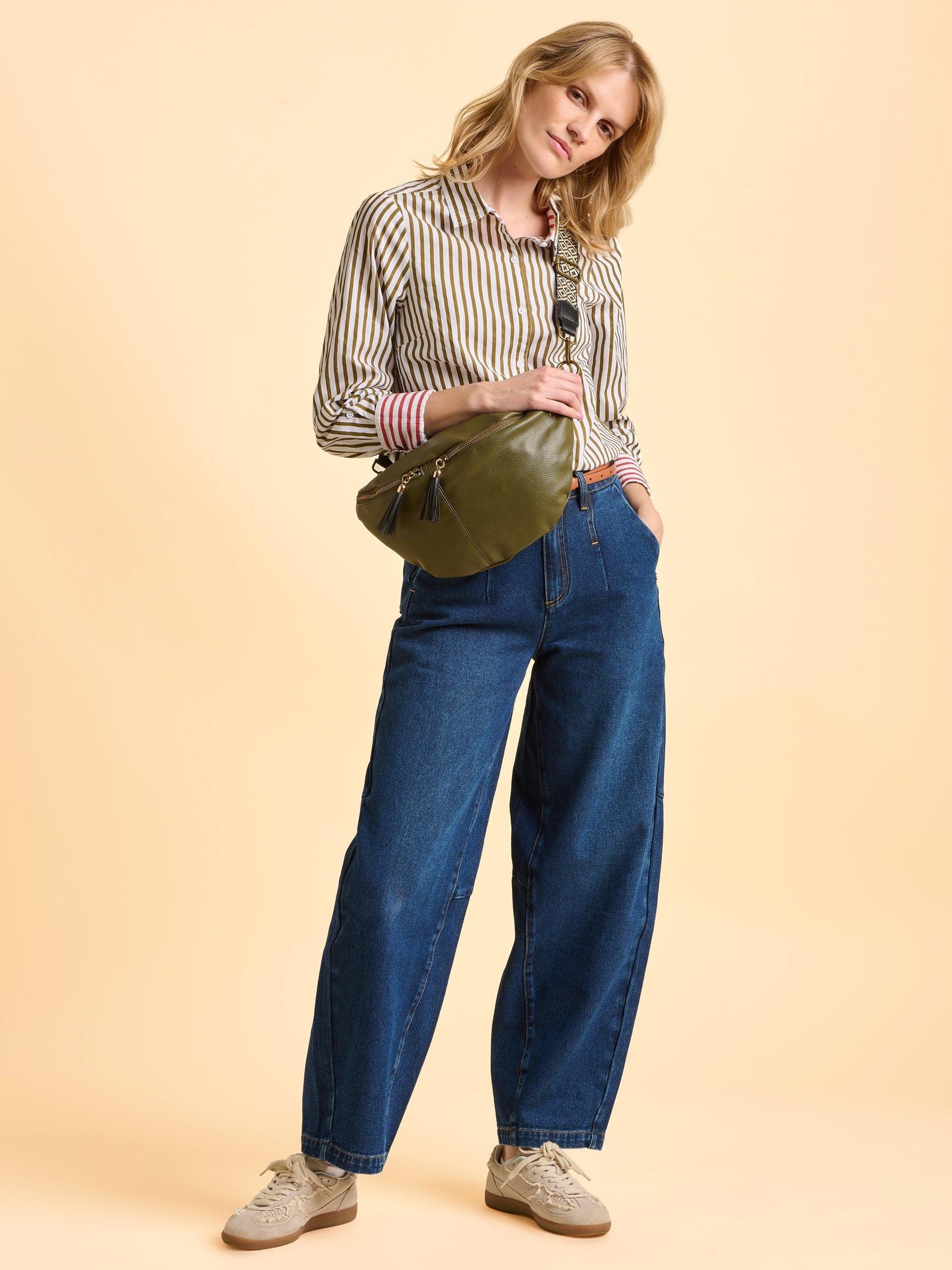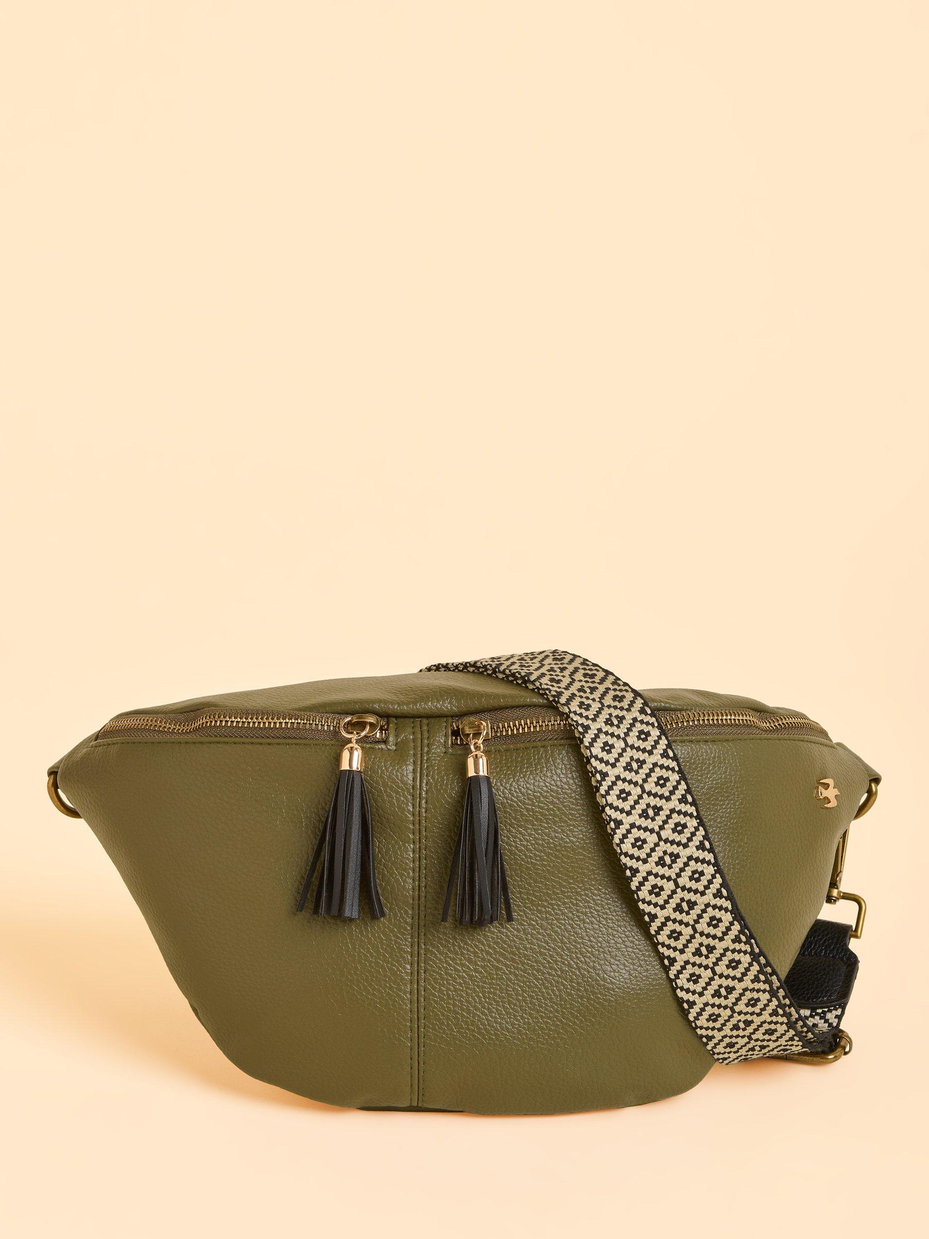 Your perfect weekend sling bag, designed to wear off the shoulder or across the body. Featuring sleek front pockets and zips for easy access to essentials. The detachable, adjustable ornate strap with brass hardware adds a stylish touch while keeping you hands-free and ready to go.