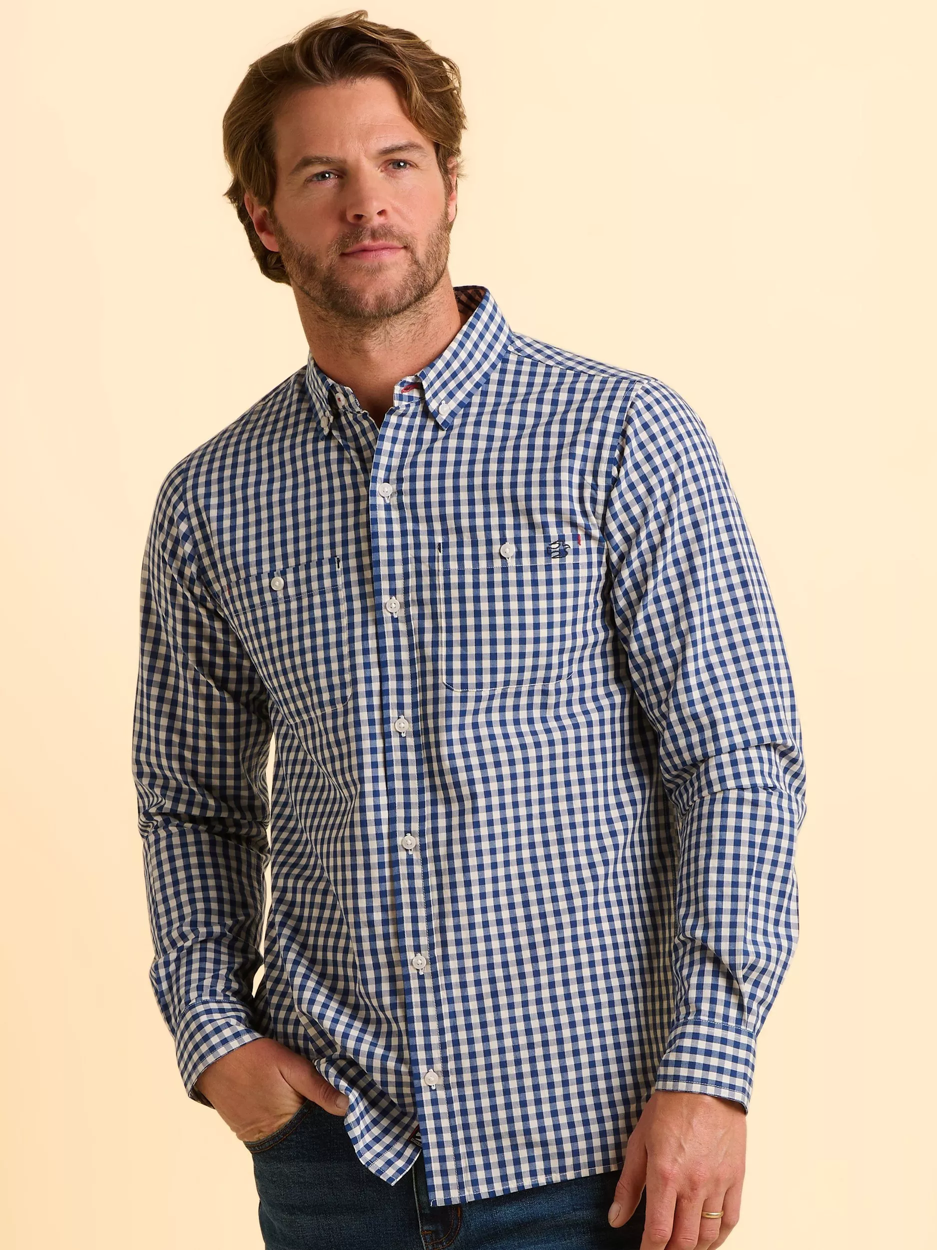 This Brakeburn shirt pairs classic gingham with a comfortable regular fit for all-day versatility. Durable cotton keeps you at ease from work to weekends, while the collared design adds a polished touch to your look.