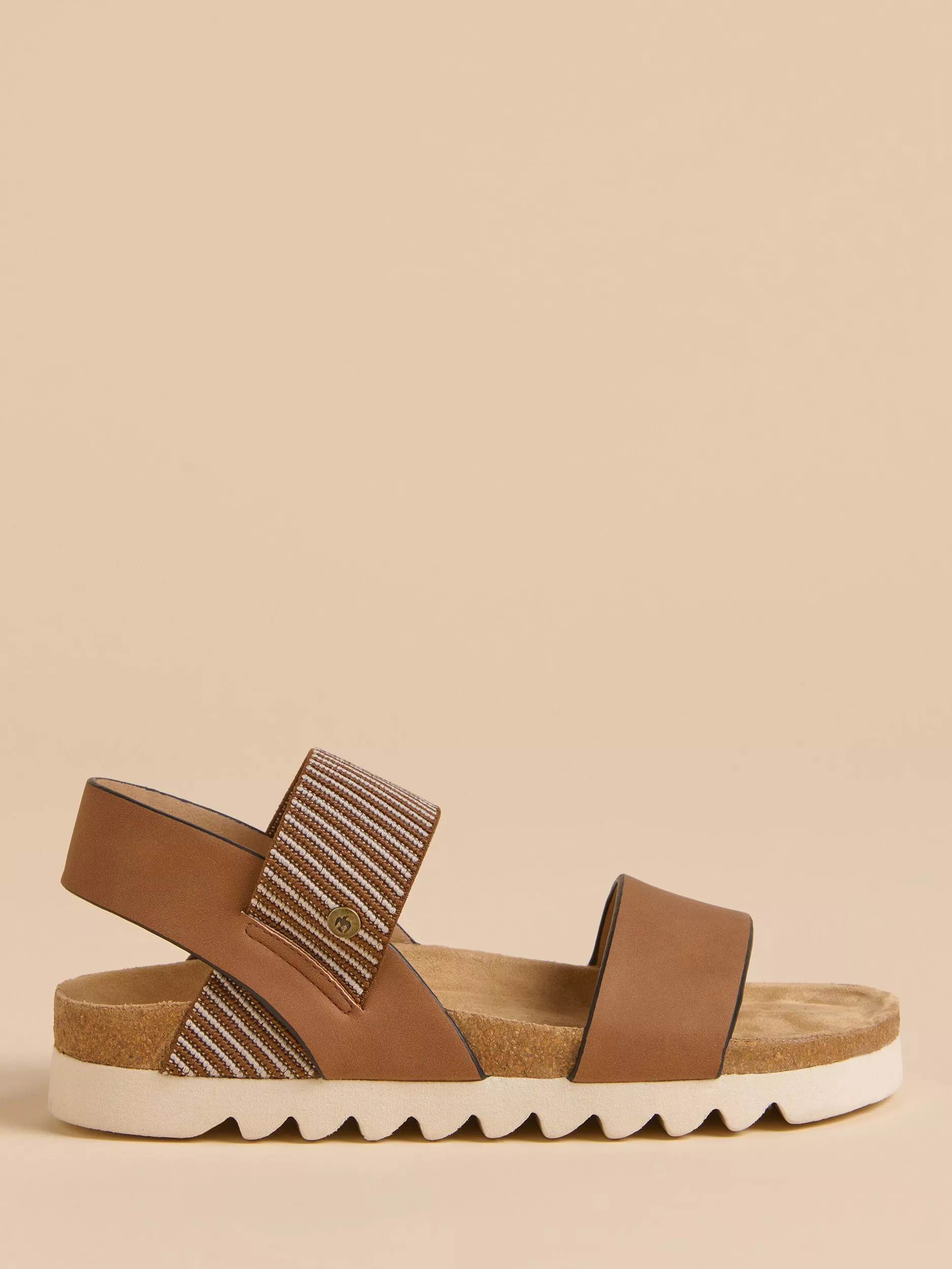 Your feet will love these classic sandals, with a wide elastic fabric strap in neutral stripes for added support and style. They'll work equally well paired with a linen dress and wide-brimmed hat or jean shorts and a simple white tee. The choice is yours.