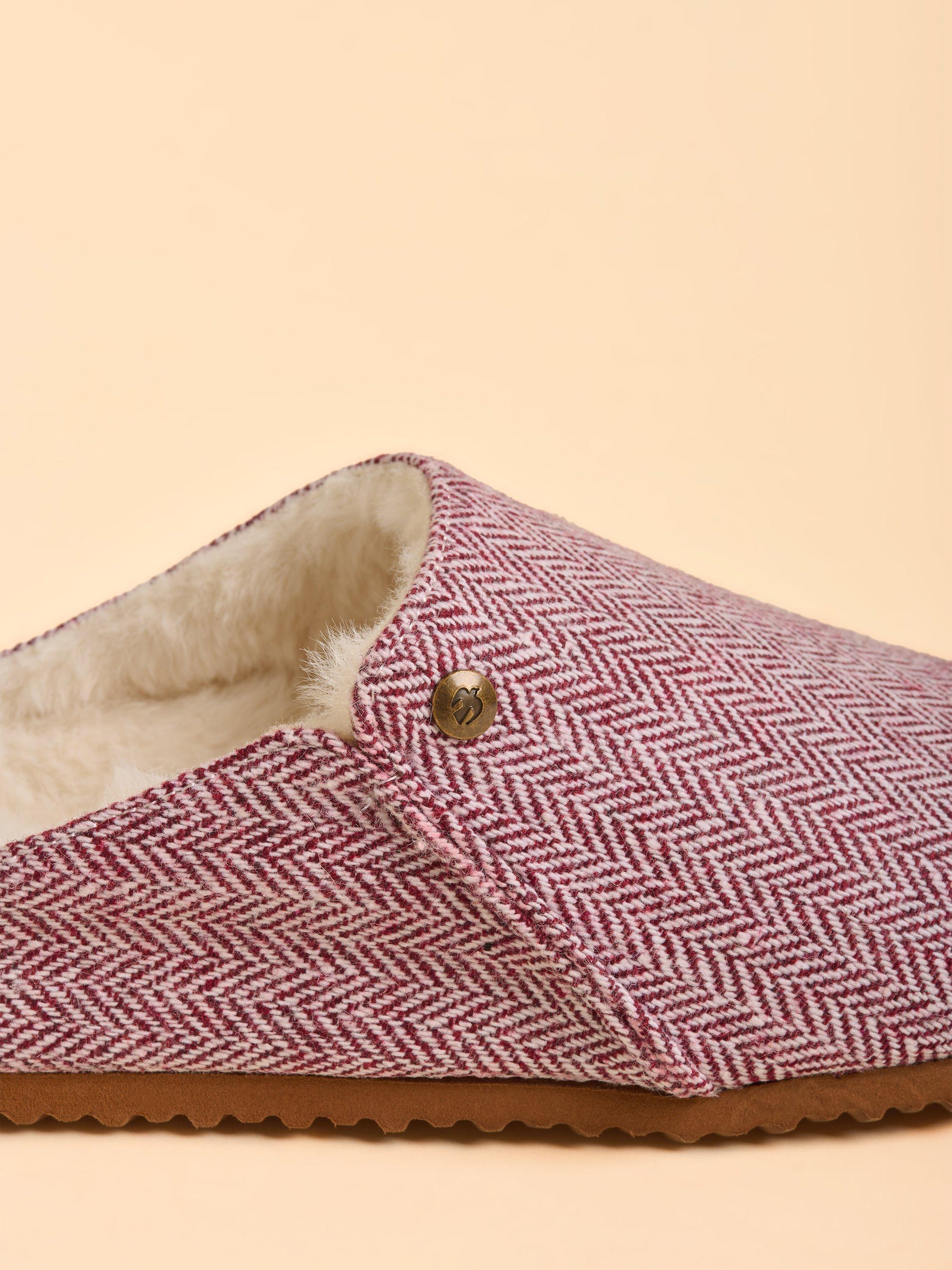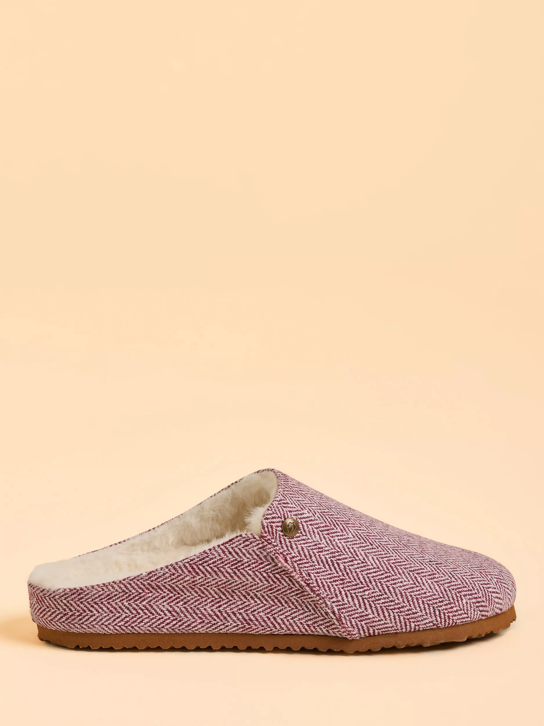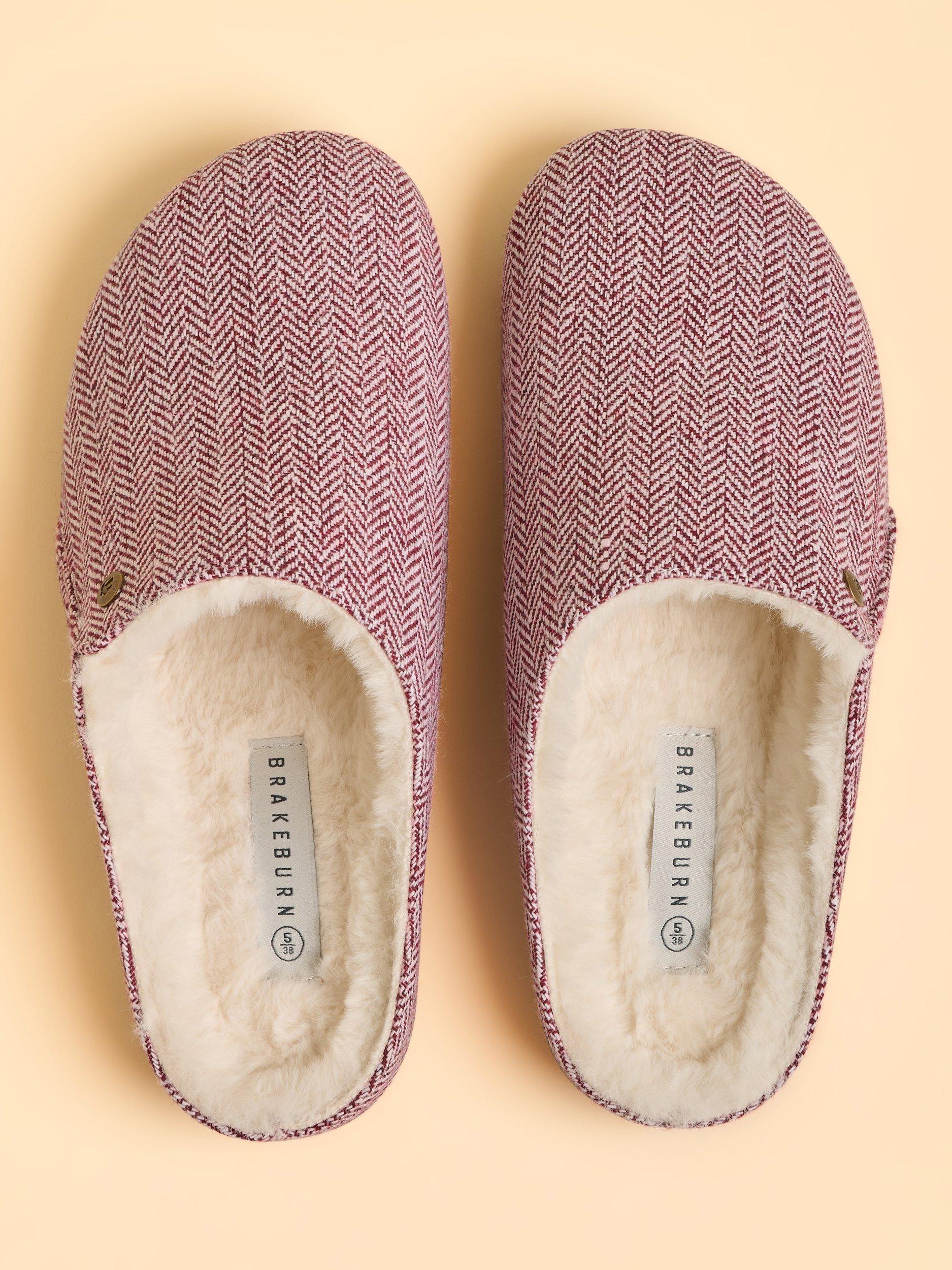Comfort meets sophistication in the Twilight Slipper. The slip-on design and durable footbed makes them easy to wear inside and out, while the fluffy lining ensures ultimate comfort. With a herringbone design and subtle Brakeburn tag, these slippers offer timeless style and cosy warmth.