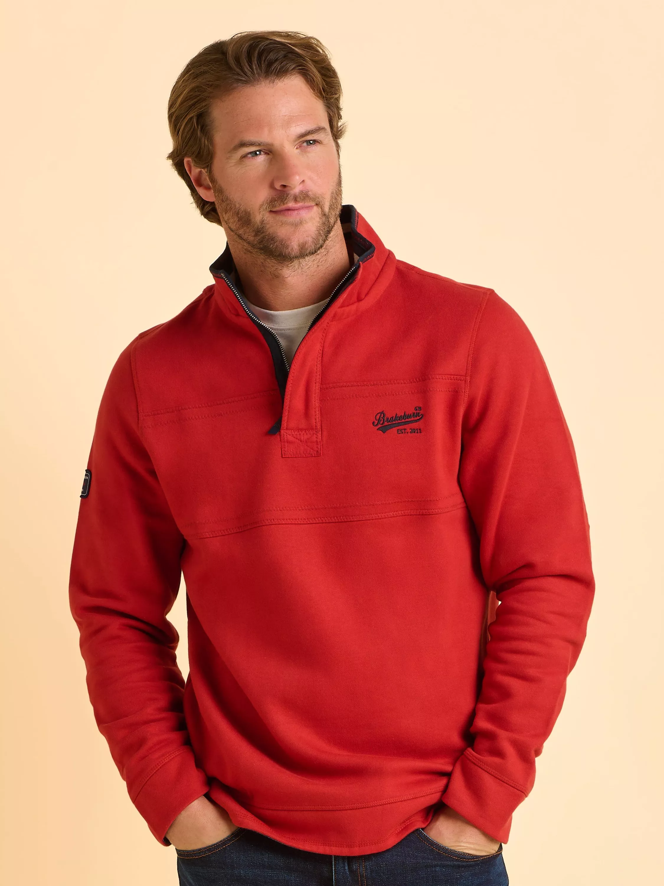 Effortlessly layer comfort and style with this Brakeburn zip neck sweatshirt. The medium-weight cotton blend keeps you warm without bulk, while its smart design works for relaxed weekends or lively catch-ups with friends.