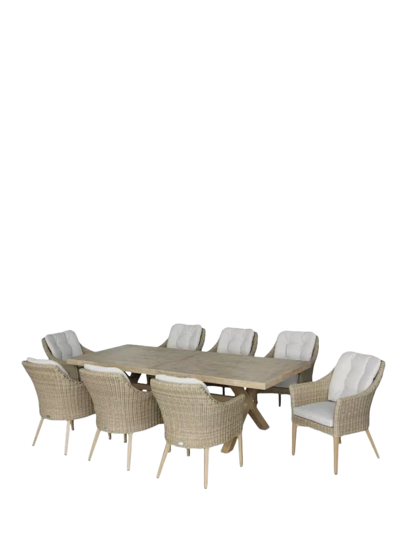 - 8-seater set: Eight dining armchairs and a rectangular dining table