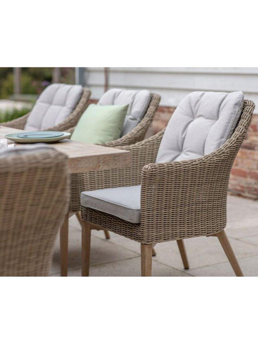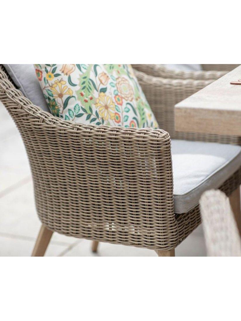 The Fairford collection is made from UV-resistant, all-weather rattan designed for year-round use. Durable and weatherproof, it retains its beauty throughout the seasons. Crafted for outdoor use, this set features rust-free aluminium frames and season-proof cushions that resist light rain, frost and fading.
