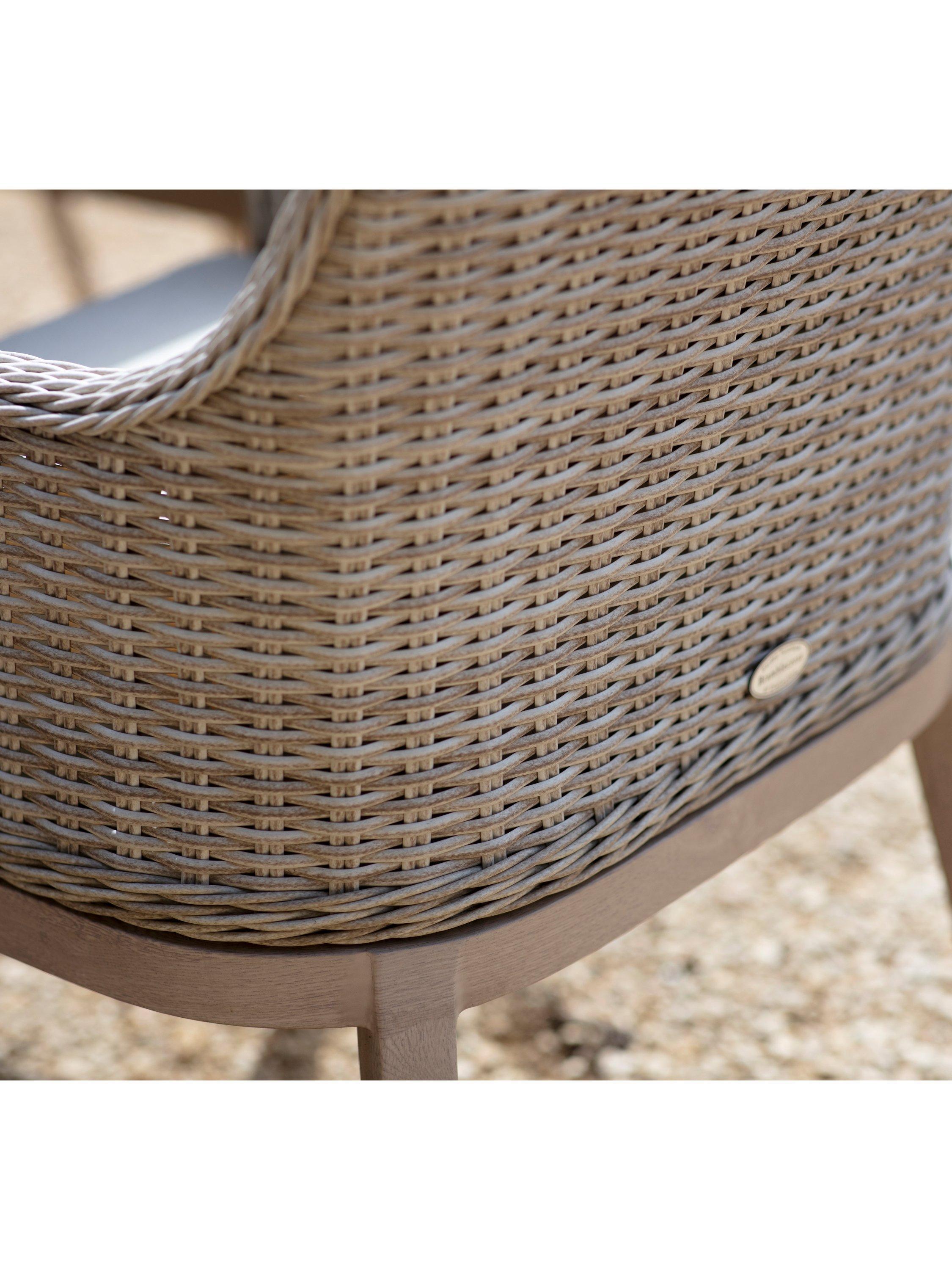 - All-weather outdoor rattan on lightweight, rust-free aluminium wood-effect chair frames and legs
