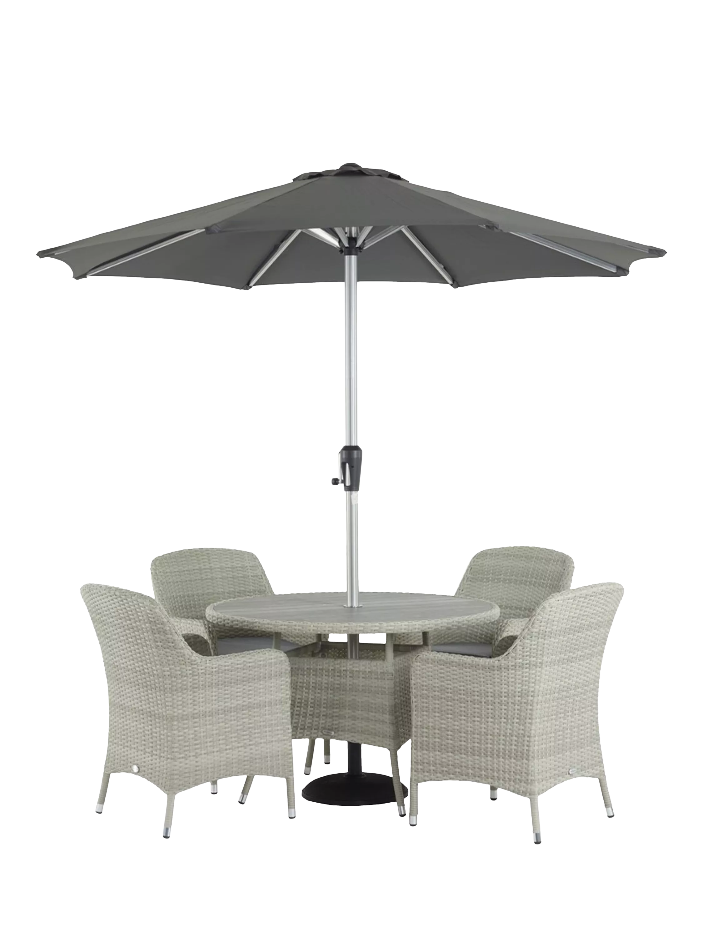 BramblecrestTetbury 4-Seater Round Garden Dining Table & Chairs Set with Parasol, Cloud