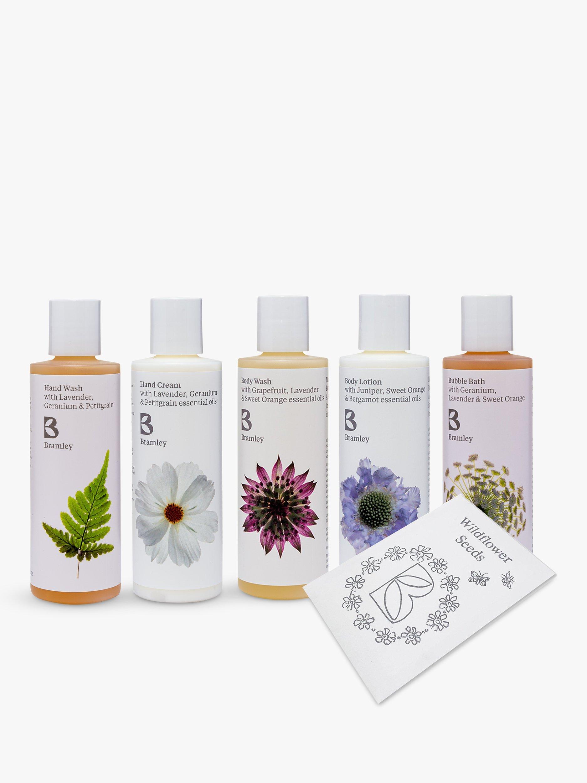 Contains: Hand Wash 100ml, Hand Cream 100ml, Bubble Bath 100ml, Body Wash 100ml, Body Lotion 100ml & a pack of Wildflower Seeds.