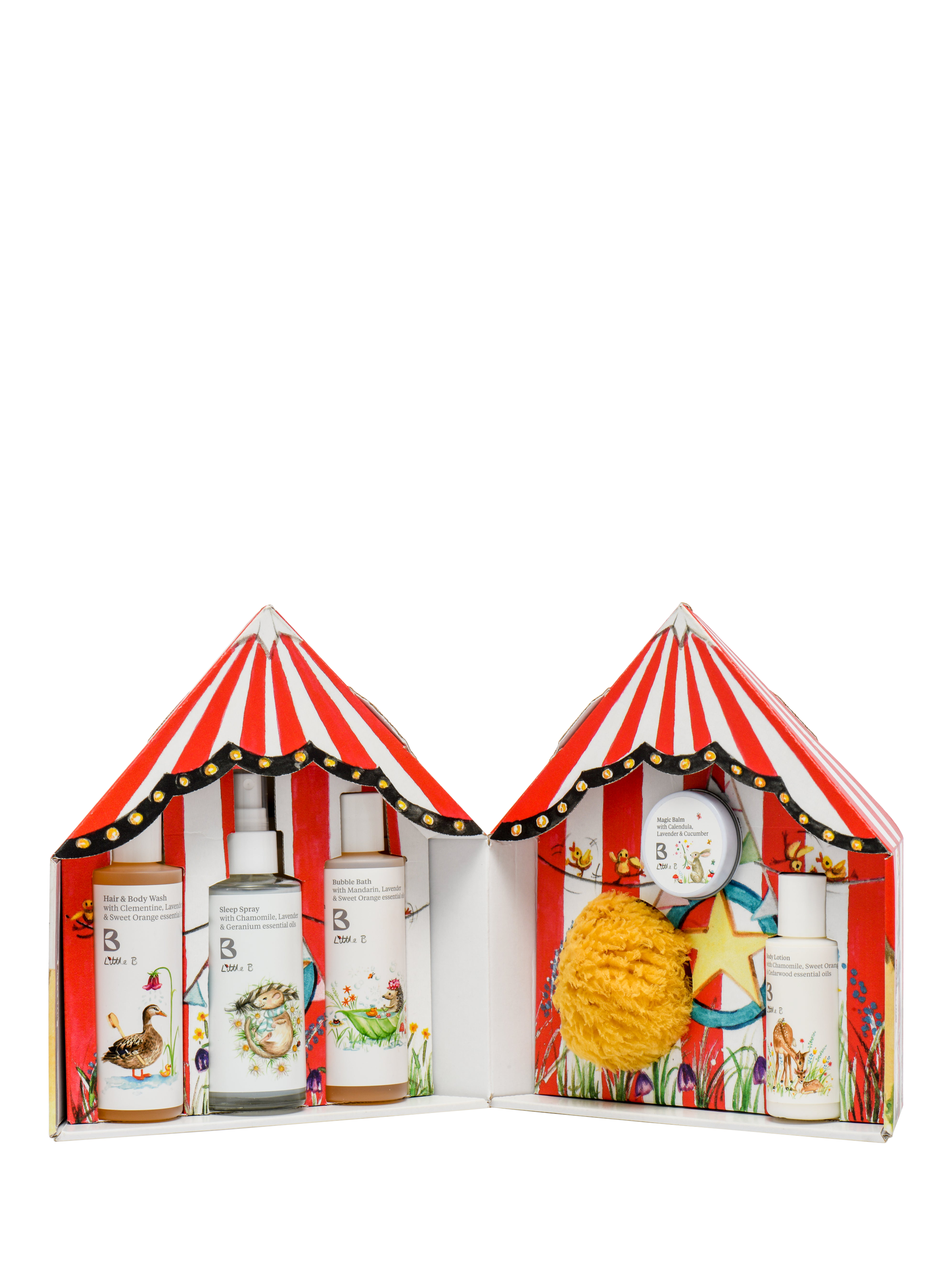 Contains: 100ml Little B Hair & Body Wash, 100ml Little B Bubble Bath, 100ml Little B Sleep Spray, 50ml Little B Body Lotion, Sponge, 15g Mini Magic Balm.