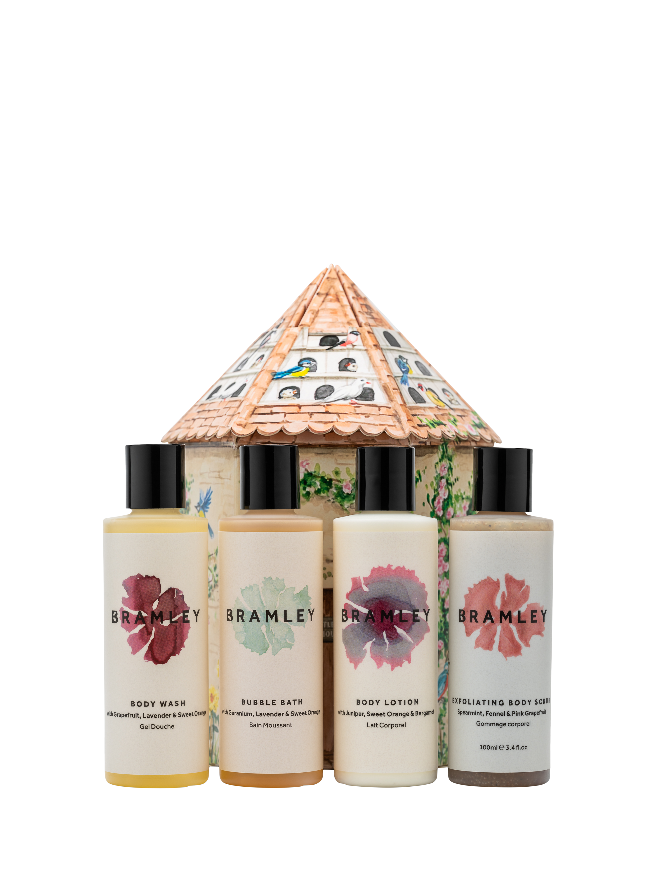 Discover the natural blends nestled in Bramley’s Little Birdhouse. Let the botanicals weave their magic - refresh and revitalise with the Body Wash and Exfoliating Body Scrub, unwind into a soothing bath with the Bubble Bath and nourish your skin with our moisturising Body Lotion.