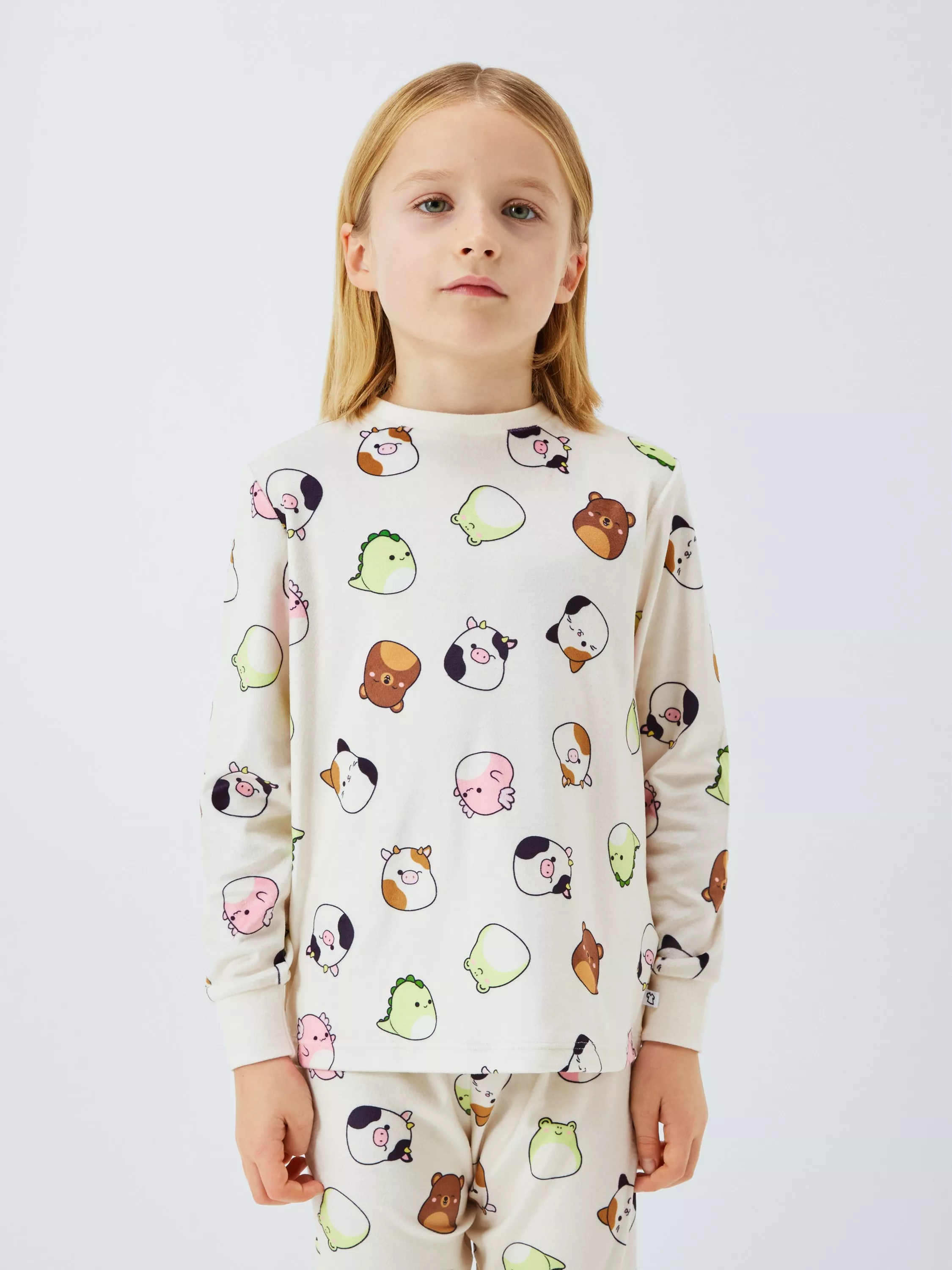 Super-soft fleece pyjamas, with an all-over printed Squishmallows design. The top features a round neck and long sleeves, while the bottoms are designed with comfy ribbed cuffs.