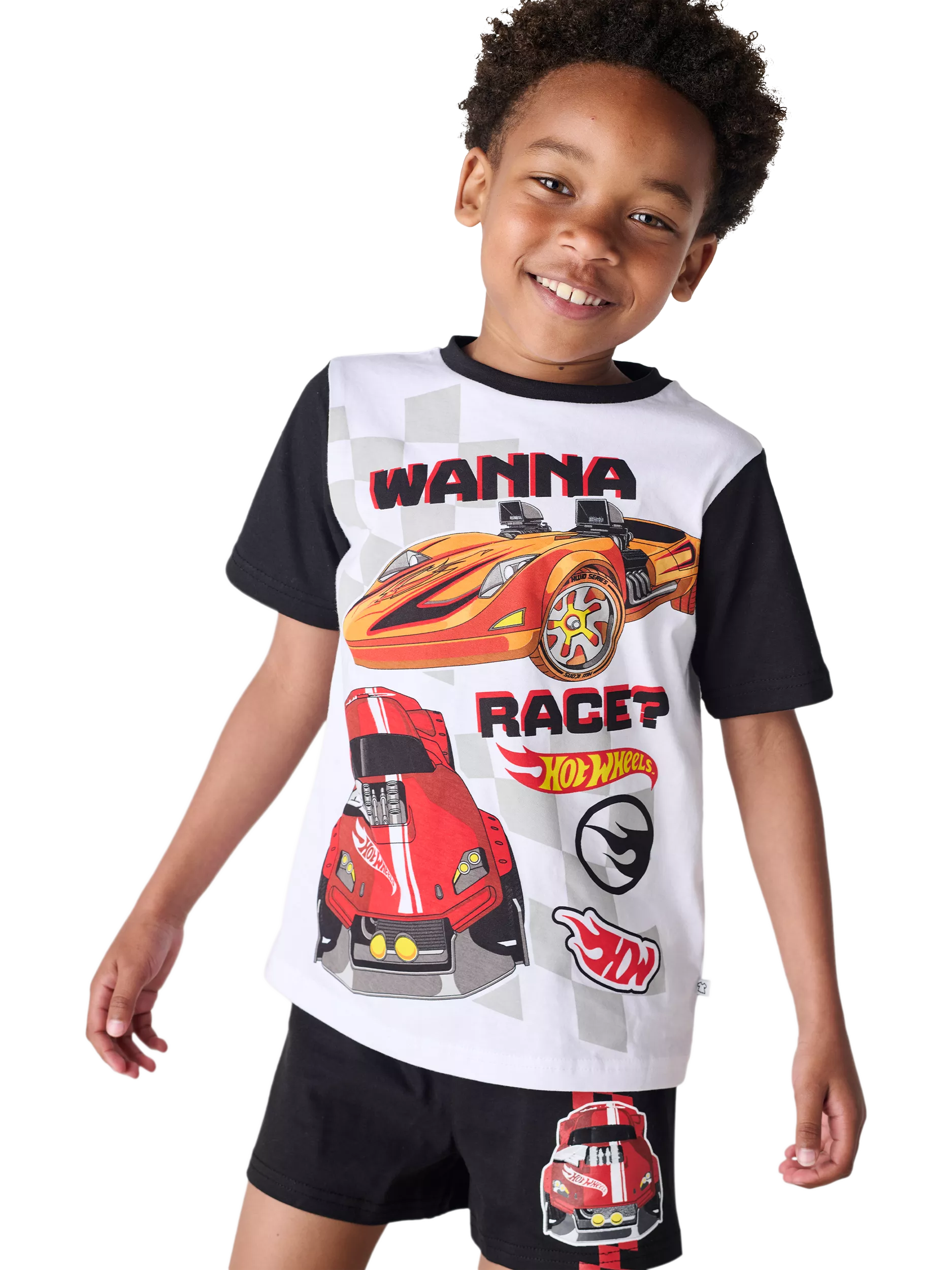Brand ThreadsKids' Hot Wheels Shortie Pyjama Set, Black