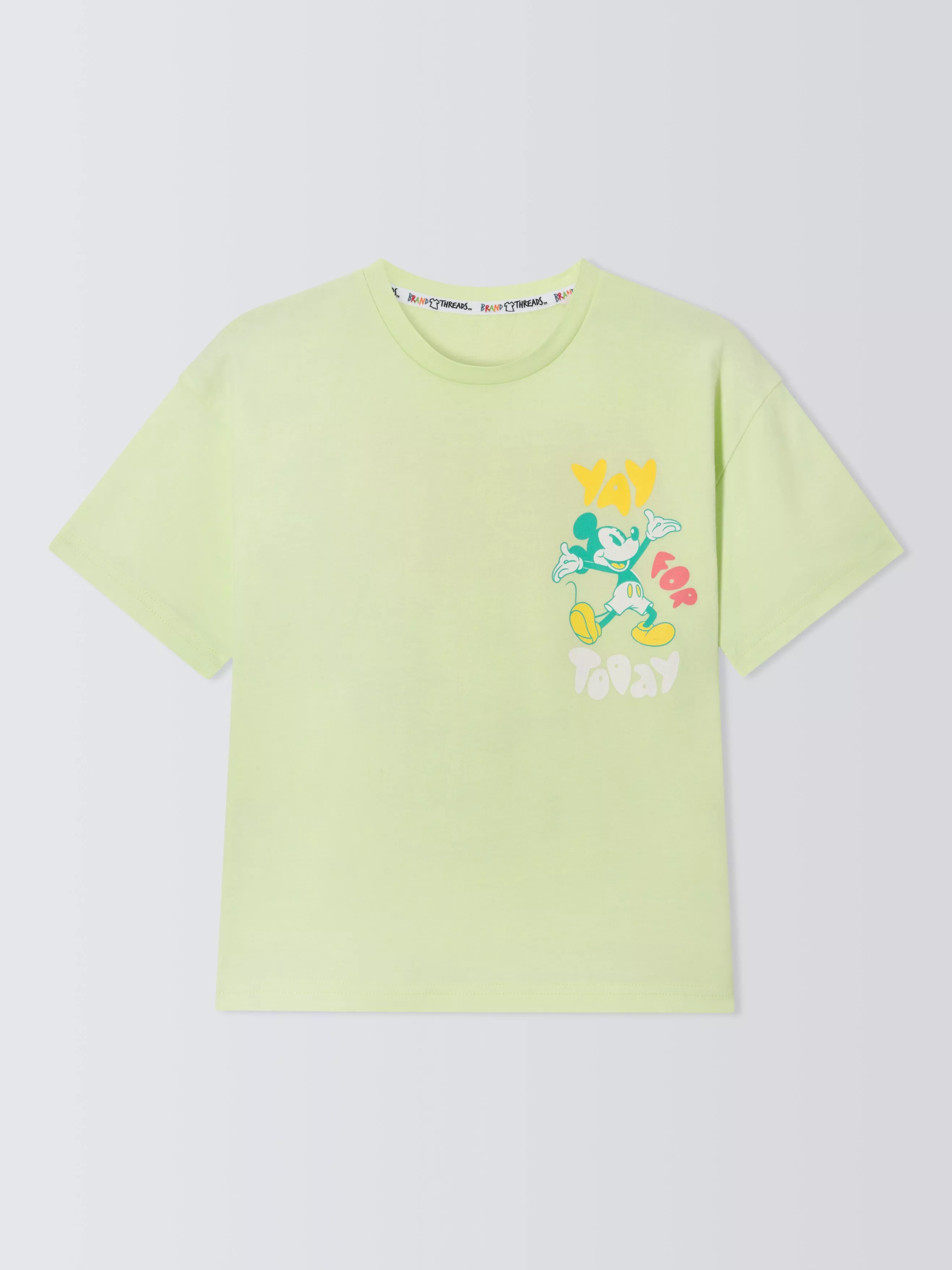 Stylish oversized fit Mickey Mouse tee with chest print and eyecatching vintage style back print. Made by Brand Threads with sustainable Better Cotton.