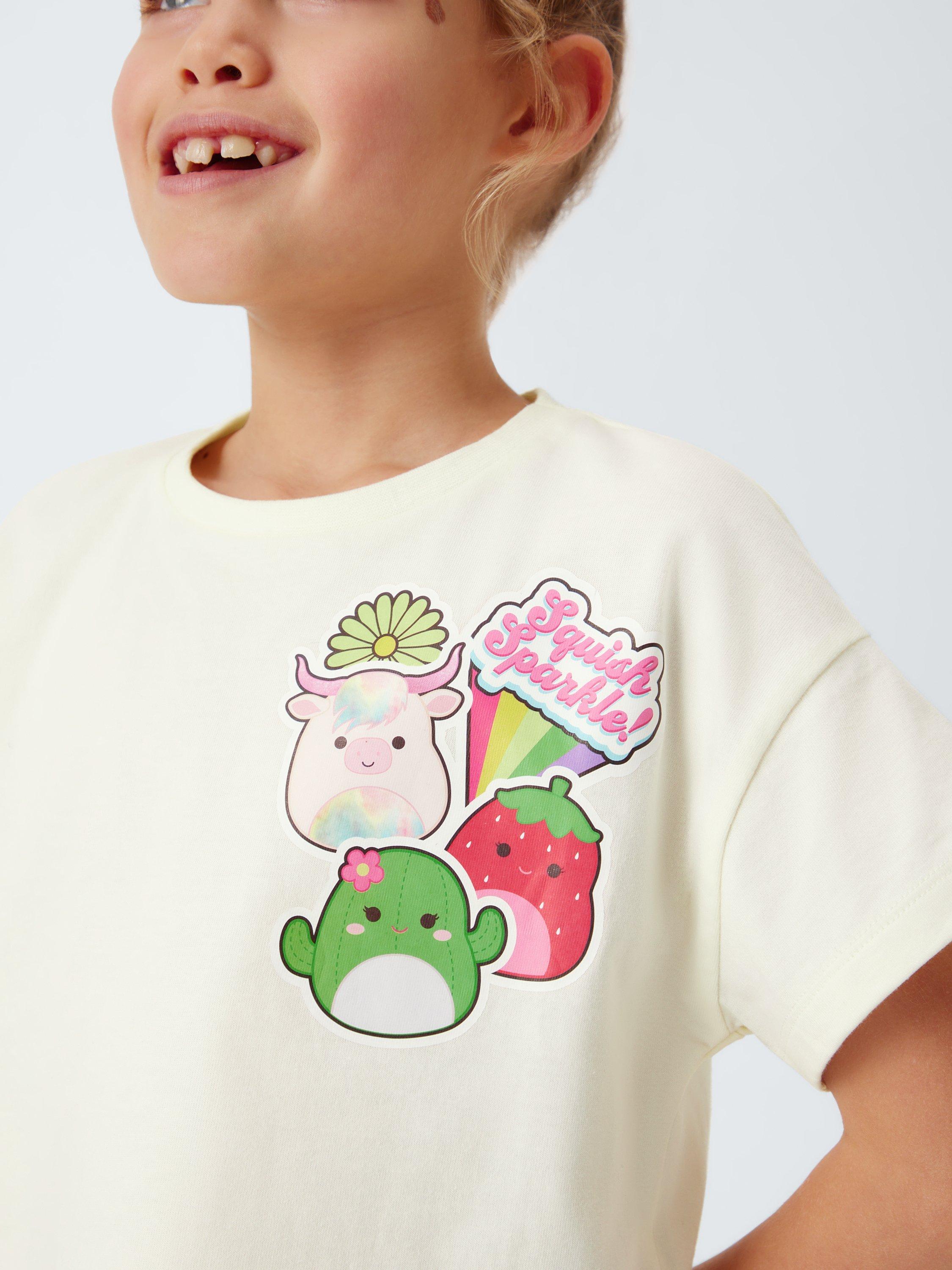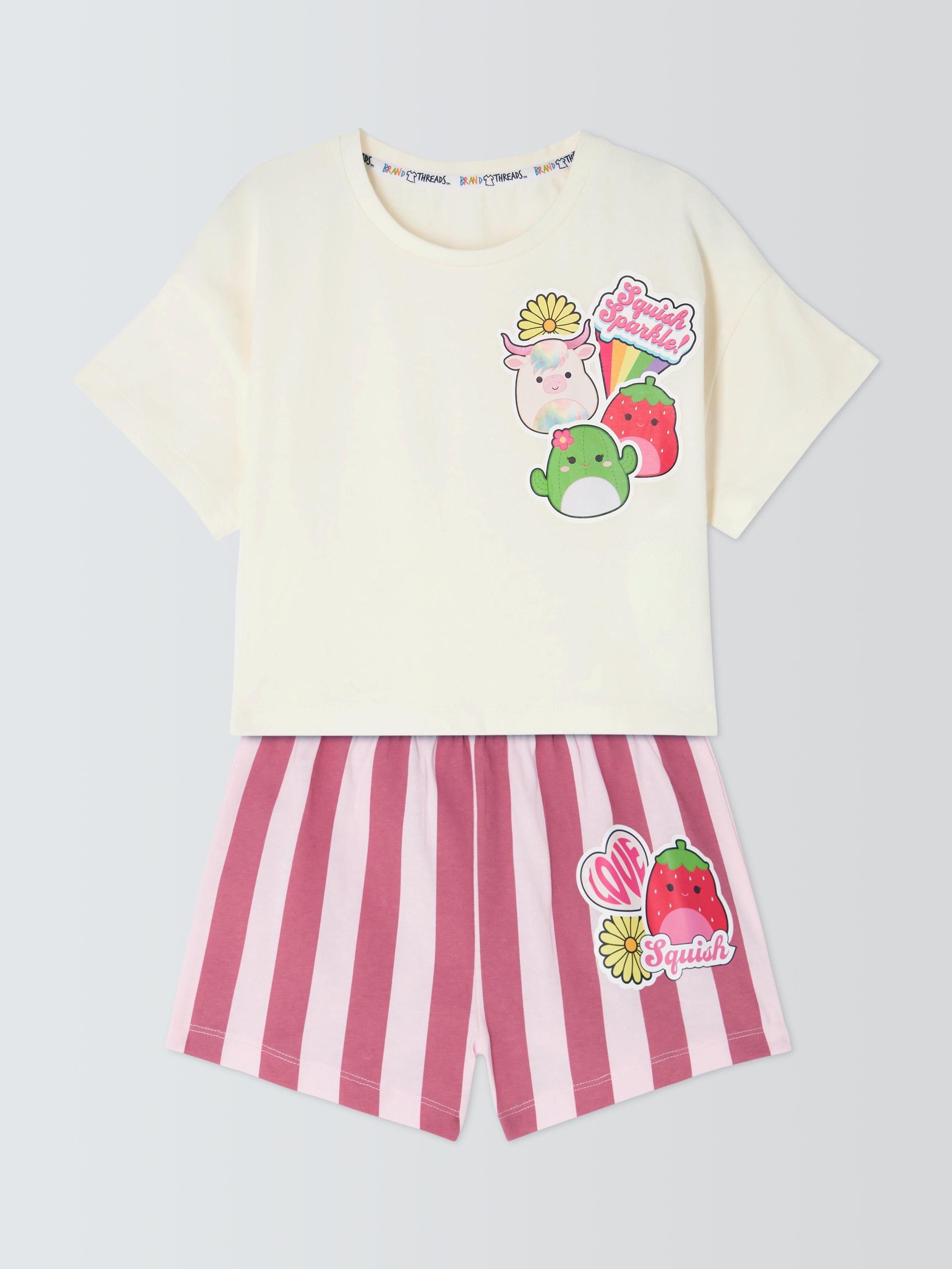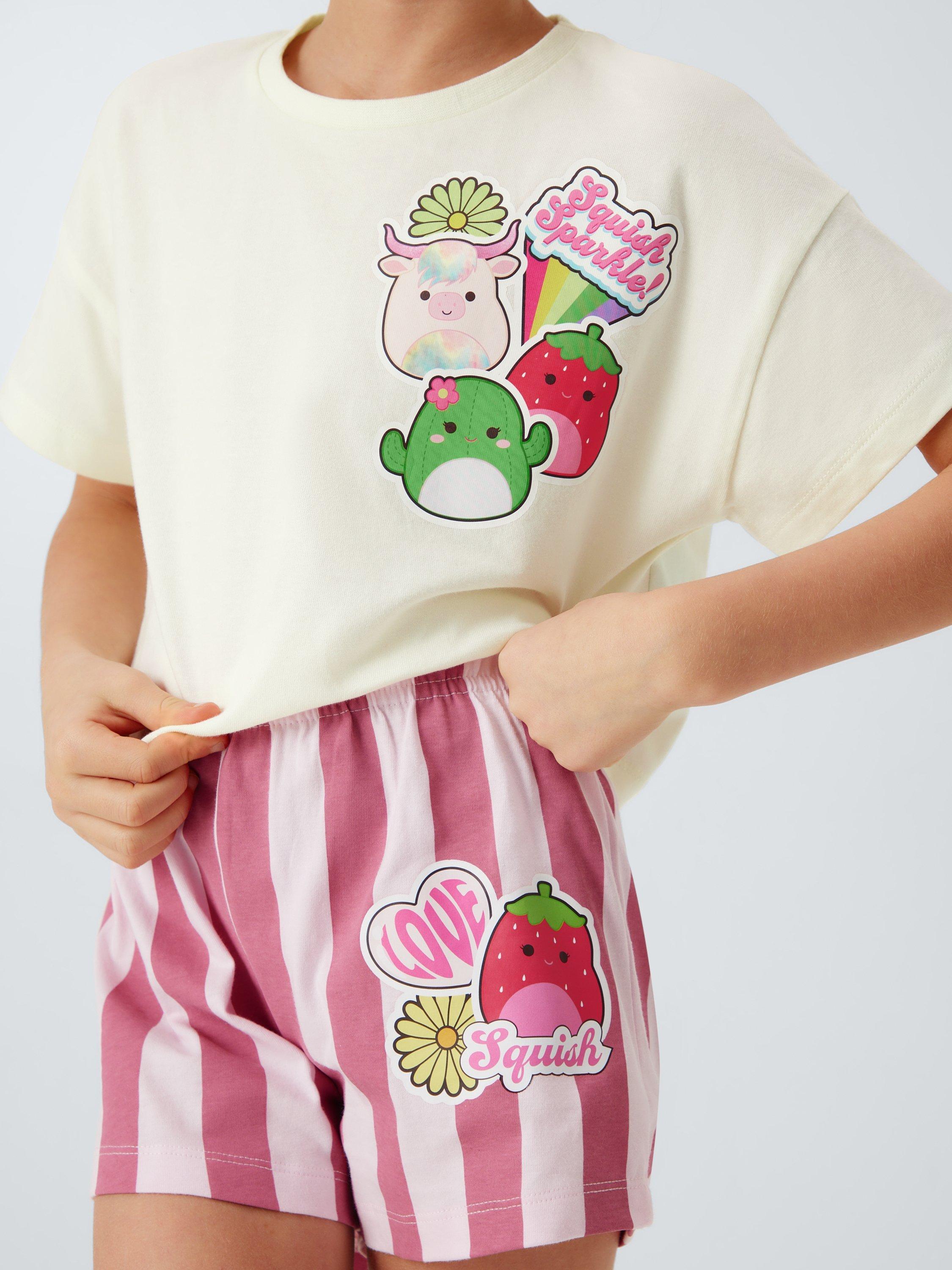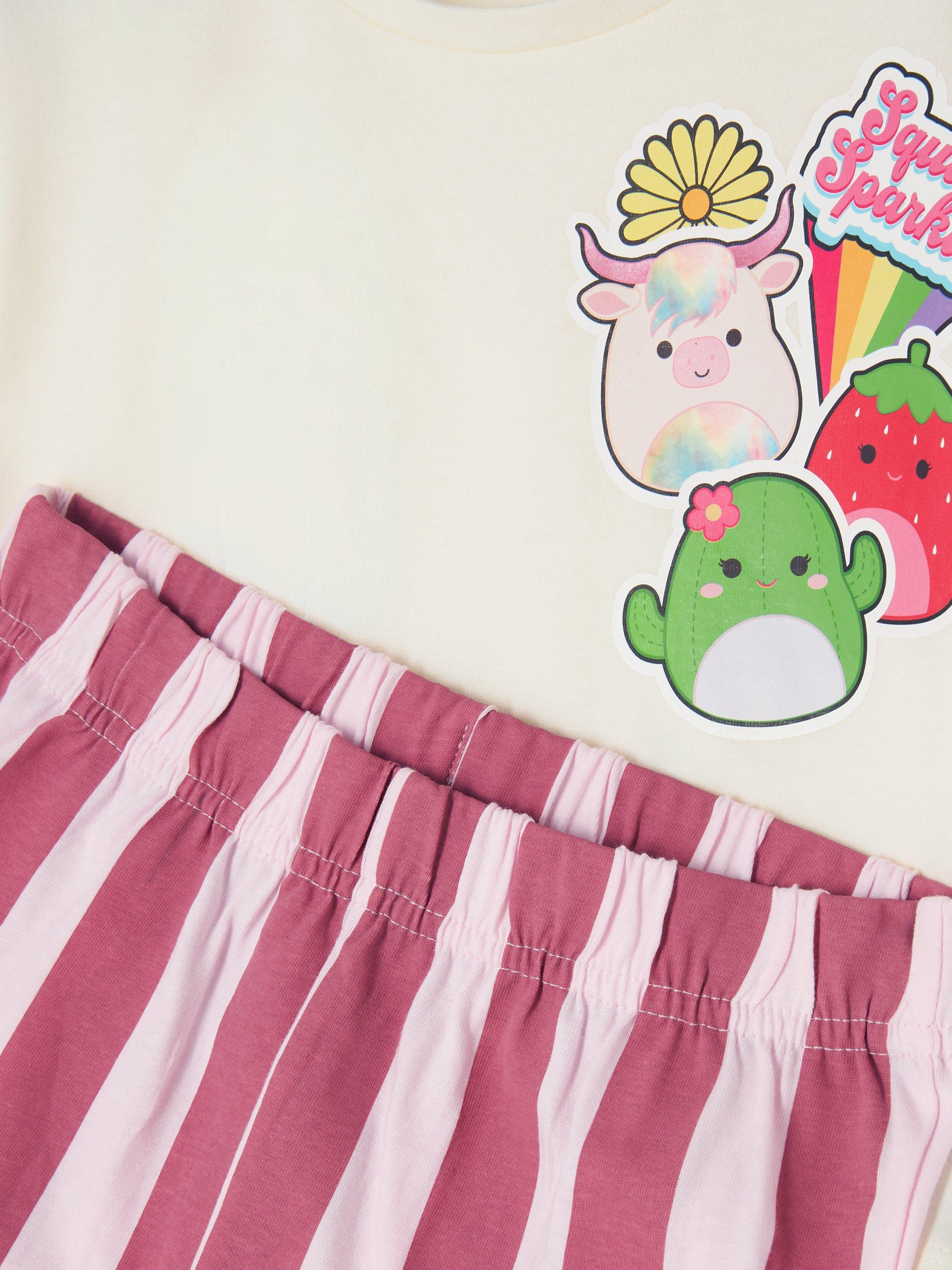Squishmallows girls shorty pyjama set. Features a printed box-fit T-shirt, teamed with stripe printed shorts. Made from 100% cotton.