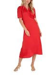 Peony Ruffle Satin Wrap Midi Dress, Red