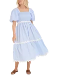 Jonna Scallop Trim Puff Sleeve Midi Dress, Light Blue