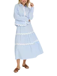Jonna Contrast Scallop Trim Midi Skirt, Light Blue