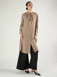 Polka Dot Tie Neck Midi Dress, Beige