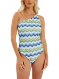 Zig Zag Crochet One Shoulder Swimsuit, Blue