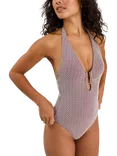 Geometric Halter Neck Shaping Swimsuit, Burgundy/Multi