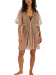 Sheer Stitch Beach Cover-Up Mini Dress, Blue