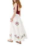 Floral Embroidered Tiered Maxi Skirt, Ivory/Multi