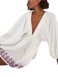 Embroidered Beach Cover Up Mini Dress, Ivory