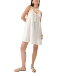 Tie Neck Lace Cotton Mini Dress, Ivory