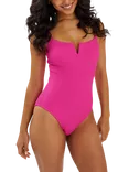 Textured V-Front Swimsuit, Pink