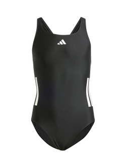 Kids' 3-Stripe Swimsuit, Black/White