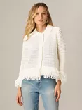 Open Knit Fringe Cardigan, Ivory