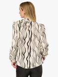 Wavy Stripe Tie Neck Top, Ivory/Black