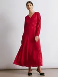 Albaray Jacquard Floral Satin Midi Dress, Red