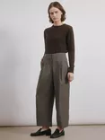 Houndstooth Tailored Barrel Leg Trousers, Brown
