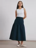 Drop Waist Flared Twill Cotton Midi Puffball Skirt