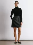 Velvet Taffeta Funnel Neck Mini Dress, Black