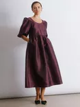 Volume Sleeve Taffeta Midi Dress, Burgundy