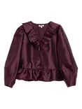 Ruffle Neck Bubble Hem Jacket, Burgundy