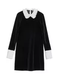 Contrast Trim Velvet Mini Dress, Black