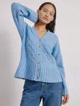 Cable Knit Peplum Hem Cardigan, Blue