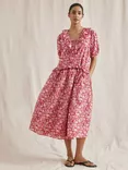 Woodblock Pure Organic Cotton Midi Dress, Red