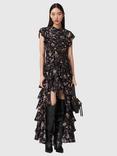 AllSaints Alexi Floral Asymmetric Dress, Yellow/Multi