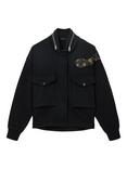 AllSaints Marlene Fringe Embellishment Pure Organic Cotton Denim Jacket, Black