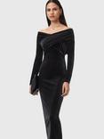 AllSaints Lana Velvet Lace Trim Dress, Black