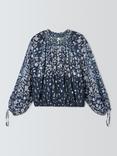 AND/OR Kiri Frill Hem Tie Neck Top, Blue Multi