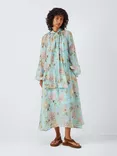 Josie Floral Pussybow Neck Dress, Blue