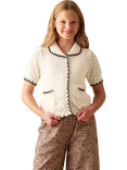 Kids' Penny Frill Detail Short Sleeve Cardigan, White