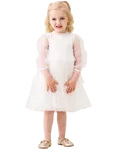 Kids' Long Sleeved Tiered Mesh Dress, Ivory