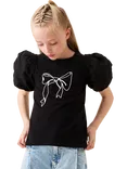 Angel & Rocket Kids' Cotton Short Sleeved Bow T-Shirt, Black