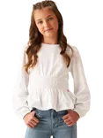 Kids' Shirred Detail Long Sleeve Top, White