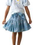 Kids' Embroidered Denim Bow Skirt, Blue